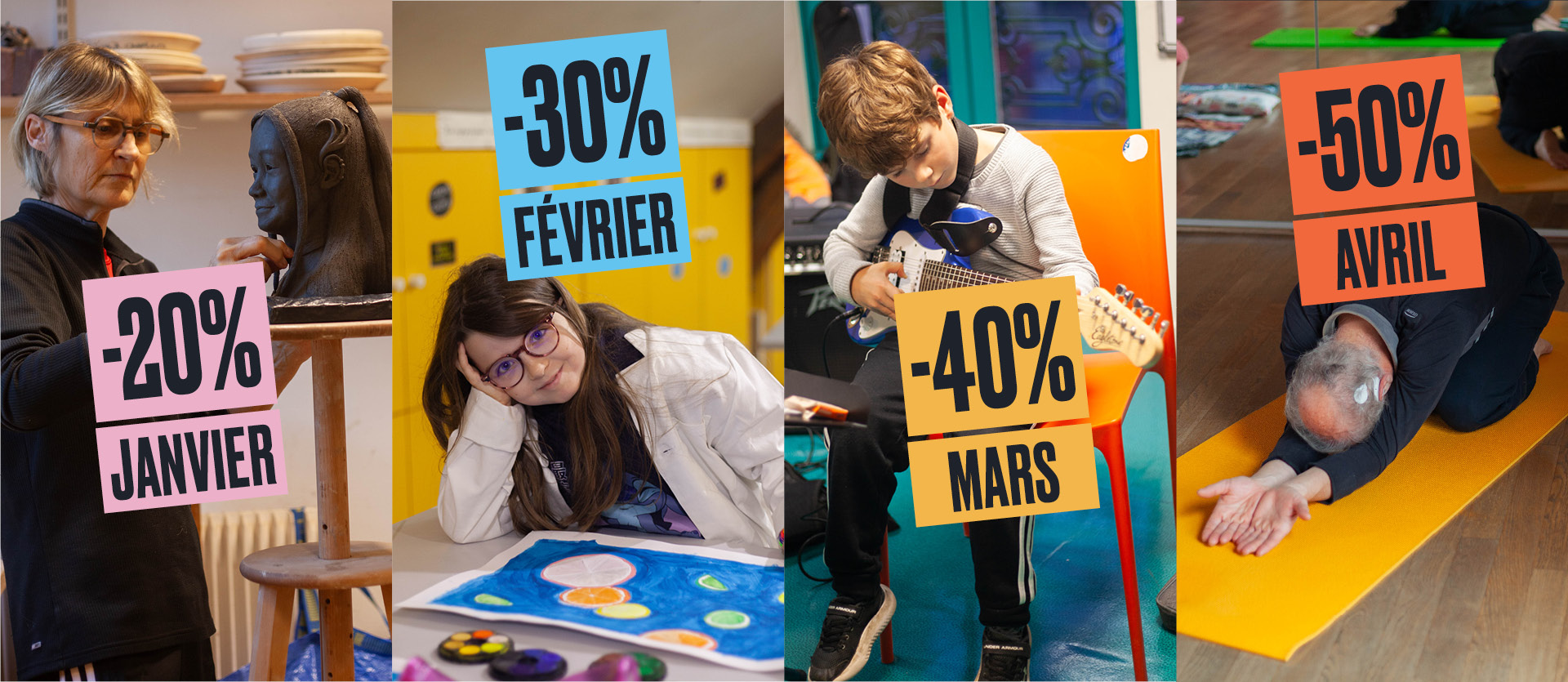 Que vous soyez attirés par le sport, la musique, les arts, la science et nature ou le théâtre, il n’est jamais trop tard pour commencer une activité. Pour vous encourager à sauter le pas, nous avons mis en place un système de tarifs dégressifs.
