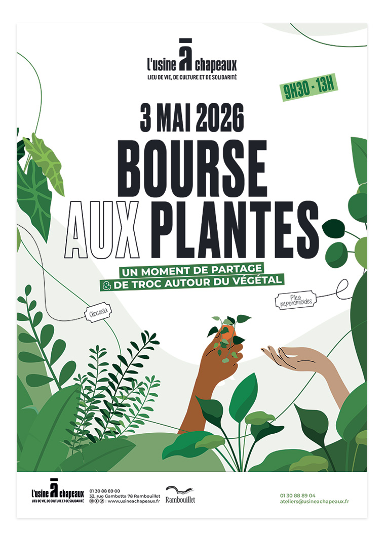 ⚠️ Nous demandons aux exposants d’arriver entre 9h30 et 10h, d’emballer leurs plantes, boutures ou semis (contenants non fournis par l’Usine à Chapeaux) et d’indiquer, si possible, le nom des plantes apportées.