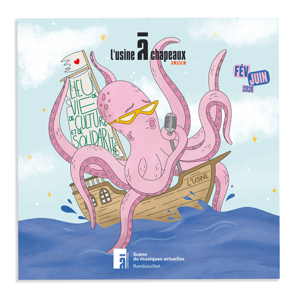 Bienvenue à bord du navire ! Pour la saison février-juin 2026, nous vous invitons à entrer dans un univers guidé par cette créature emblématique : la pieuvre aux trois cœurs. De la découverte avec une scène rap, aux artistes émergents avec St Graal sans oublier des artistes bien ancrés avec La Maison Tellier, la Scène de musiques actuelles de l’Usine n’a rien laissé au hasard.